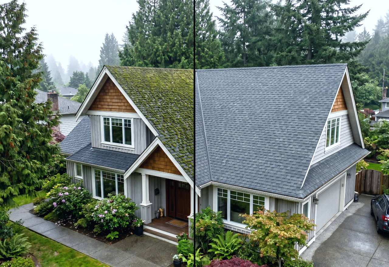 If you have spotted green patches creeping across your shingles, you are not alone. We have cleaned roofs in every corner of the Lower Mainland, and the story is the same from North Vancouver to Surrey. Our rain never stops, and neither does the moss.