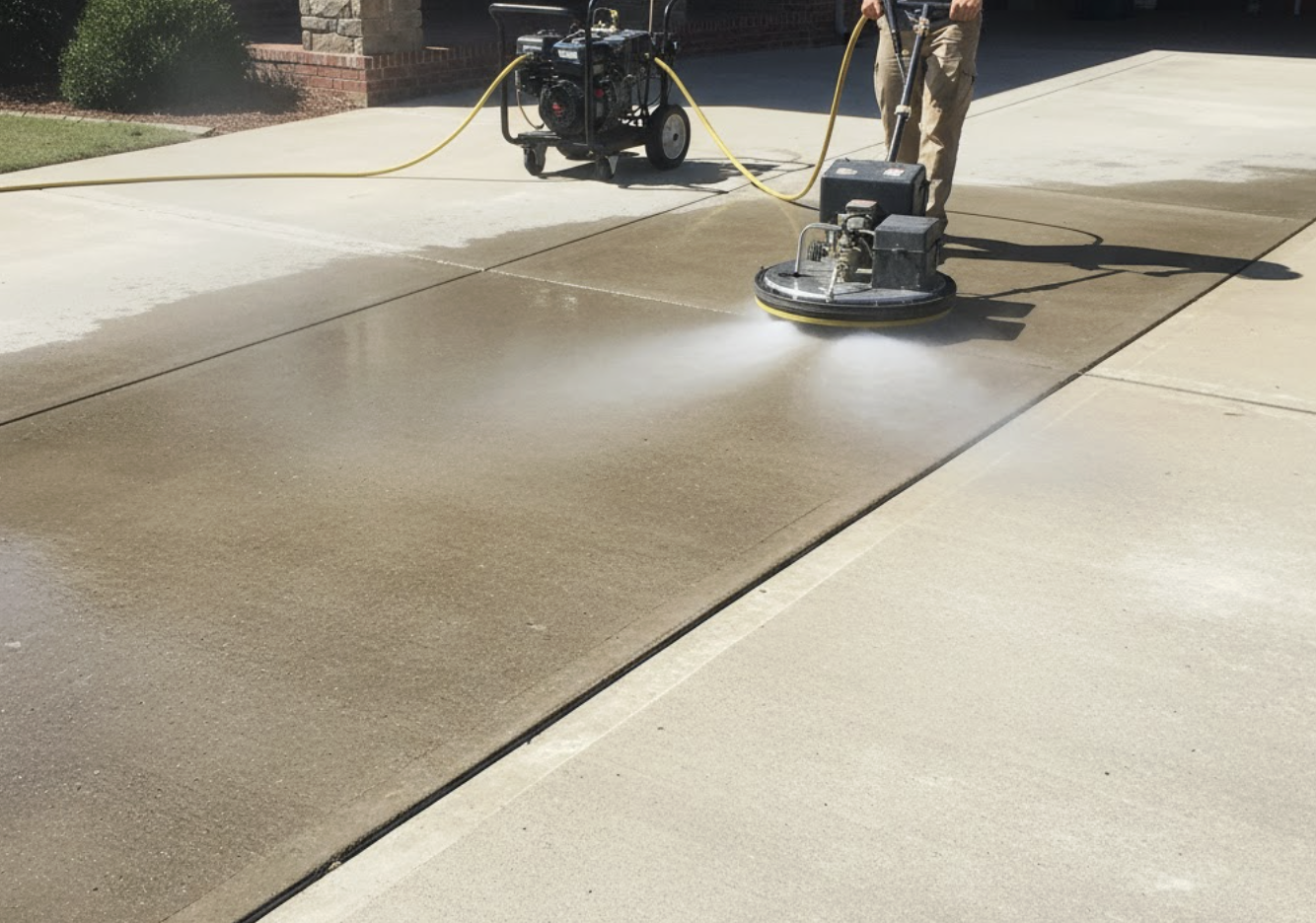 Our experienced team arrives on time with commercial-grade equipment and eco-friendly cleaning solutions. We use the appropriate technique - soft washing for delicate surfaces like vinyl siding and stucco, or high-pressure washing for concrete and driveways. We protect your landscaping, work efficiently, and ensure every surface is thoroughly cleaned without damage.